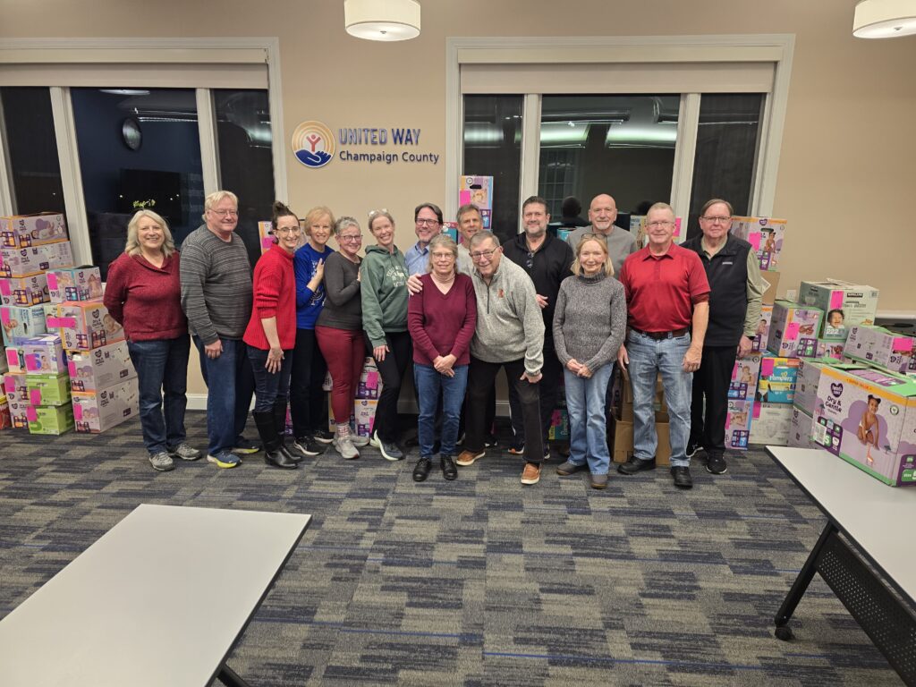 Kiwanis Club of Champaign-Urbana at the United Way Diaper repack in December 2025.CU Schools Foundation director Michelle Gonzalez accepts a donation from Kiwanian Marc Changnon.Kiwanians volunteer at Champaign Unit 4 Schools Early Childhood Education Center.
